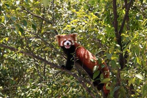 中國最大的小熊貓館。十只活潑可愛的小熊貓生活的場館有一千多平方米,是目前中國最大的小熊貓生活場館。它們在樹梢枝葉間嬉戲打鬧,竄來跳去,一條蓬松的長尾巴,其棕色與白色相間的九節(jié)環(huán)紋,非常惹人喜愛。