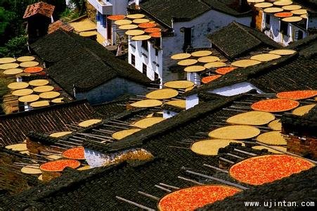 游覽【梯云村落.四季花海.曬秋人家→篁嶺(huáng)景區(qū)】“地無三尺平”四面環(huán)山的篁嶺古村,民居在百米落差的嶺谷錯落排布,家家鑿窗采光,戶戶支架曬物, 長長木架托起圓圓的曬匾。