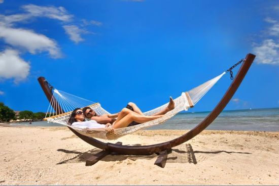在白色沙灘上,躺在月牙狀的吊床上,可以感受到陽光觸摸著肌膚的綠洲里的安詳。